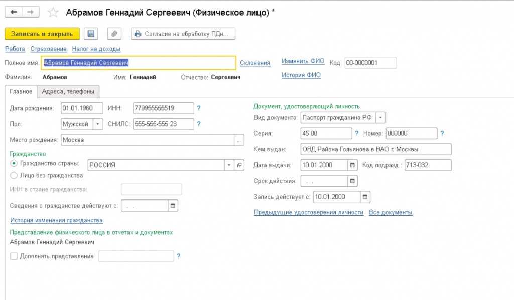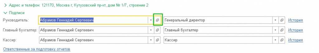 - Заполнить свойства физического лица, от имени которого будет подписываться отчетность.