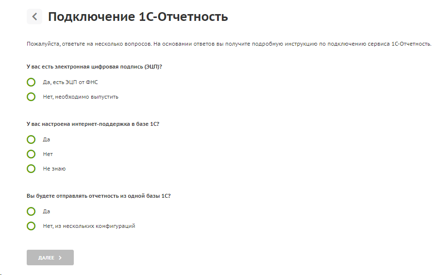 После этого ответьте на несколько вопросов по подключению и нажмите на кнопку «Далее».