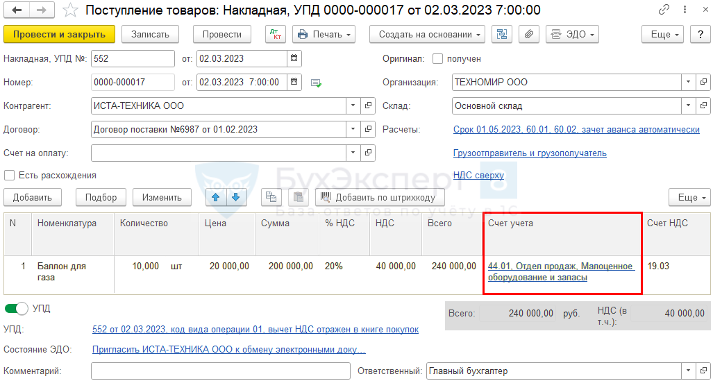 - Счет затрат — в нашем примере 44.01 «Издержки обращения в организациях, осуществляющих торговую деятельность», так как организация занимается торговлей;
