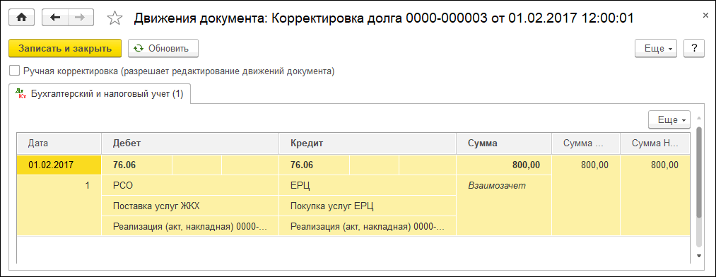 Дт 76 (ЕРЦ) / Кт 76 (РСО) – Начисление услуг от имени РСО в адрес ЕРЦ
