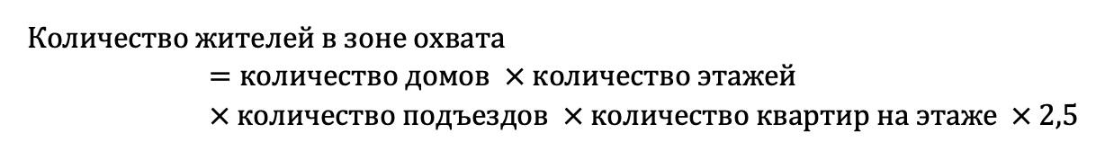 Хороший показатель для радиуса 300 метров — от 6000 человек и выше. Количество определяется исходя из 2,5 человек на квартиру: