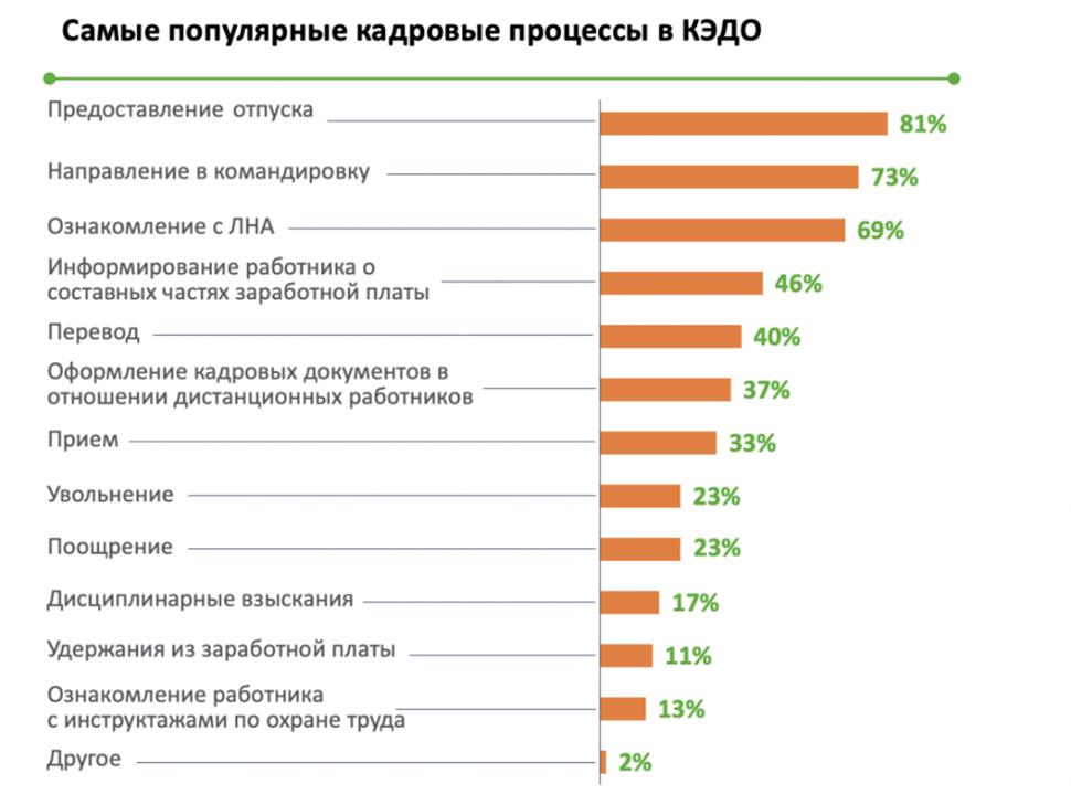 Конкретный перечень процессов, подлежащих переводу в электронный вид в целом и на каждом этапе внедрения ЭДО, определяется работодателем самостоятельно преимущественно по критерию частоты использования в компании.