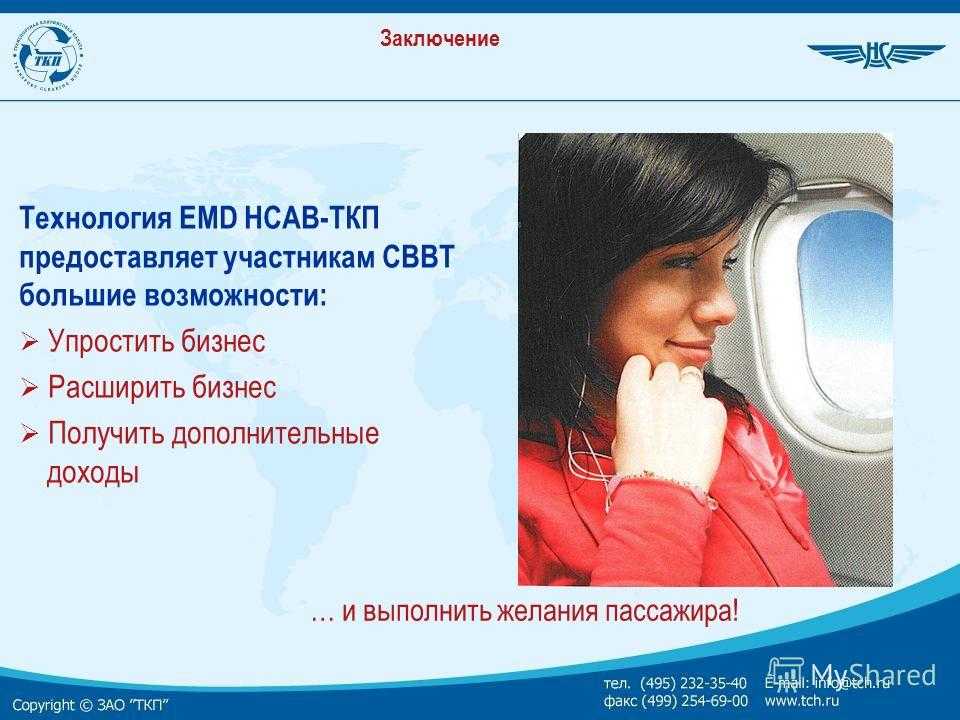 Заключение Технология EMD НСАВ-ТКП предоставляет участникам СВВТ большие возможности: Упростить бизнес Расширить бизнес Получить дополнительные доходы … и выполнить желания пассажира!