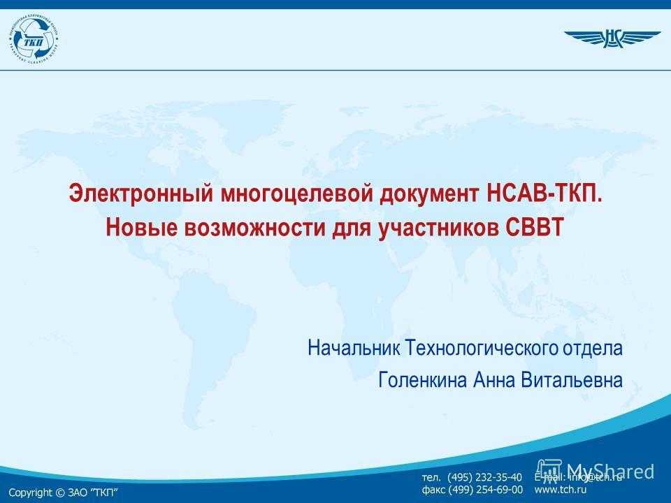Презентация на тему: » 1 Электронный многоцелевой документ НСАВ-ТКП. Новые возможности для участников СВВТ Начальник Технологического отдела Голенкина Анна Витальевна.» — Транскрипт: