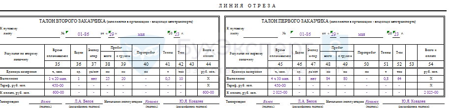 Задача водителя для правильного оформления путевого листа заключается только в том, чтобы поставить подпись о приеме и сдаче машины в конце рабочей смены, а также сделать отметки о совершенных переездах.