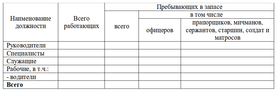 Важно отметить, что сумма забронированных и незабронированных должна равняться общему количеству работников в запасе: пункт 10.2 + пункт 10.5 = пункт 10.1.