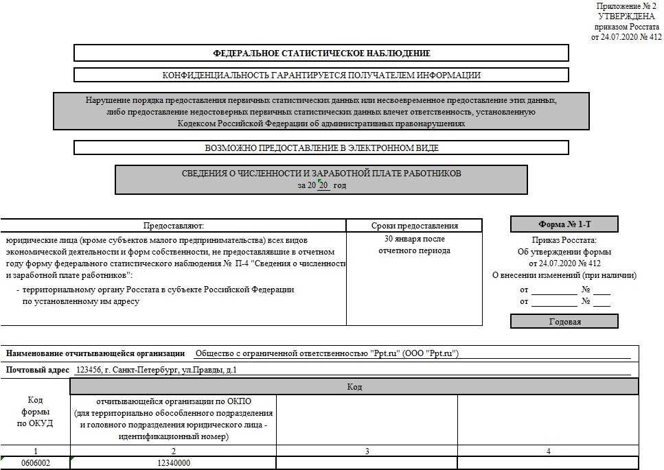 Статистика требует заполнять этот документ по информации, имеющейся на 31 декабря отчетного периода. Пошаговая инструкция, как заполнять форму 1-Т статистика за 2020 г., предусматривает выполнение следующих действий.