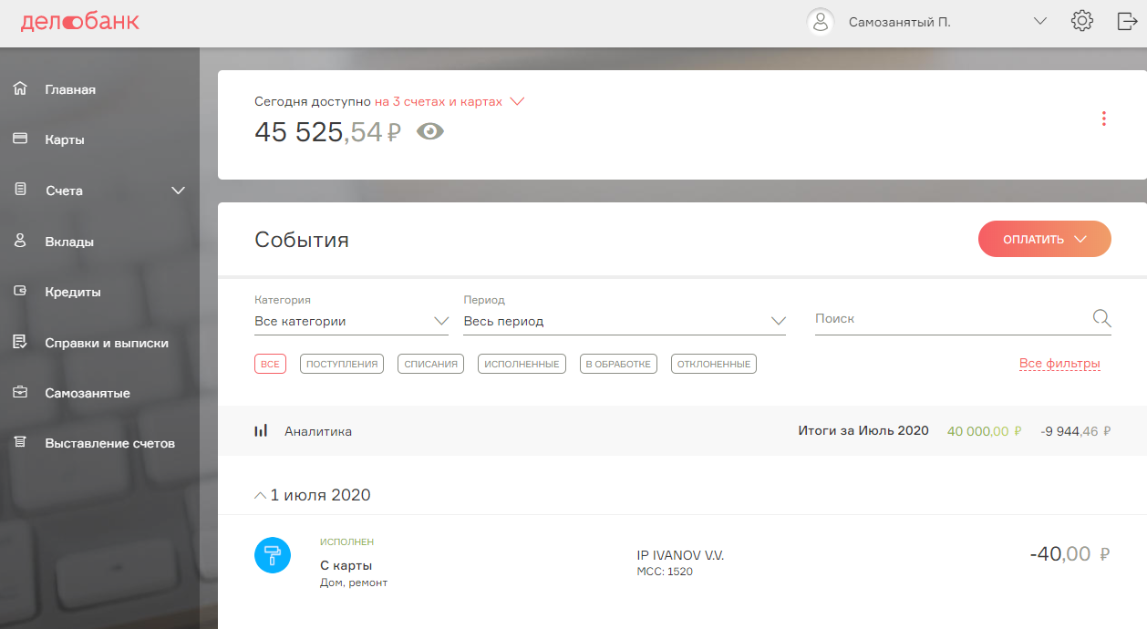 Вот как сформировать чек в личном кабинете «Делобанка»: