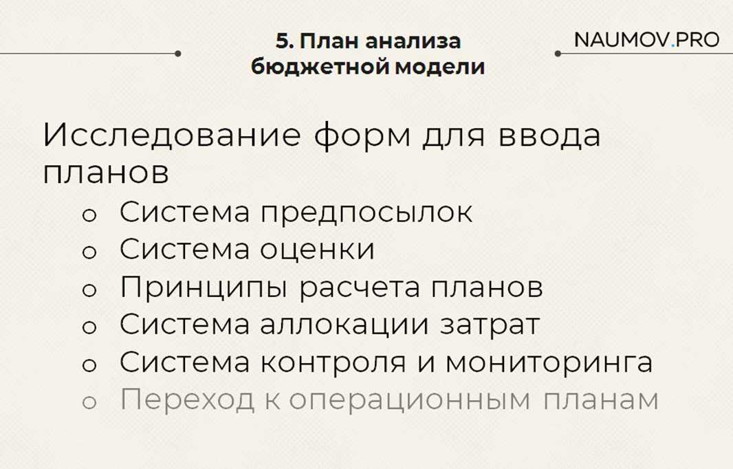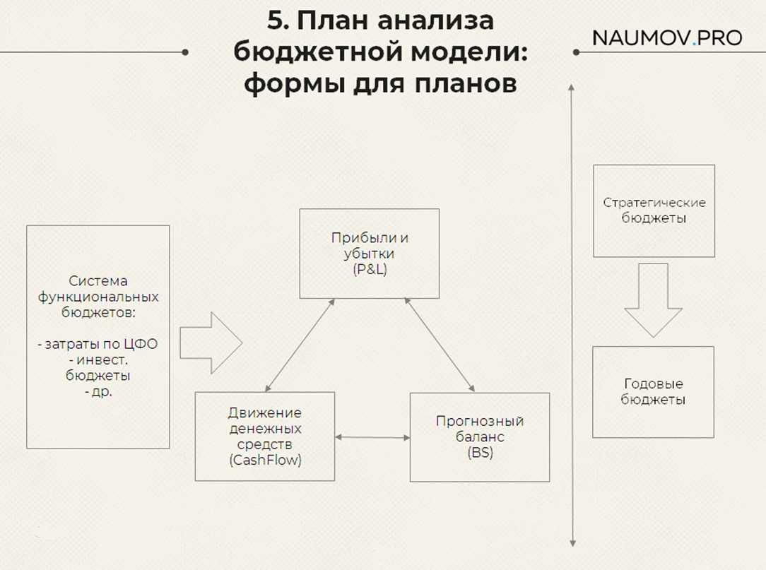 Будет очень здорово, если у вас получится совместить, свести, приблизить друг к другу процессы операционного планирования и бюджетирования – чтобы бюджетирование было контрольным механизмом для системы операционного планирования. Или же наоборот, поставляло данные, которые уже декомпозируются на этапах операционных планов.