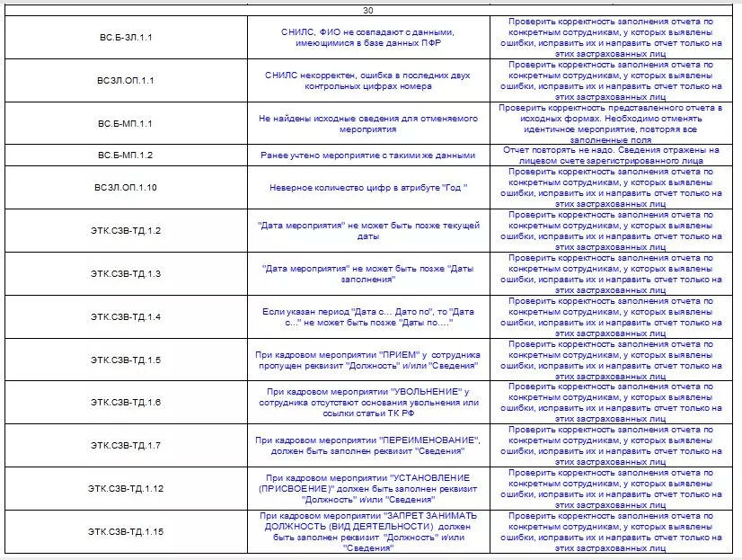 | 30 | Несоответствие реквизитов сотрудника, на кого составляется отчет. | Проверить реквизиты, выявить и исправить ошибку. |