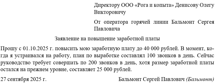 В этом разделе вы официально заявляете о своем желании и необходимости повышения заработной платы
