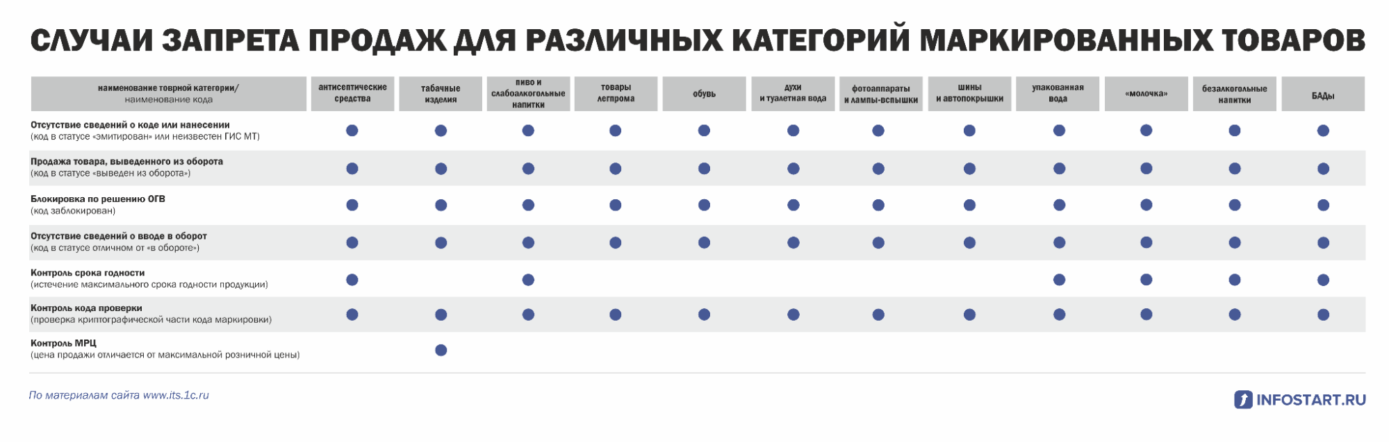 - Запрет немаркированной продукции. Предполагается, что продавать товары без КиЗ больше нельзя, поэтому также необходимо нанести маркировку на остатки. Иначе грозят штрафы в соответствии с действующим законодательством.