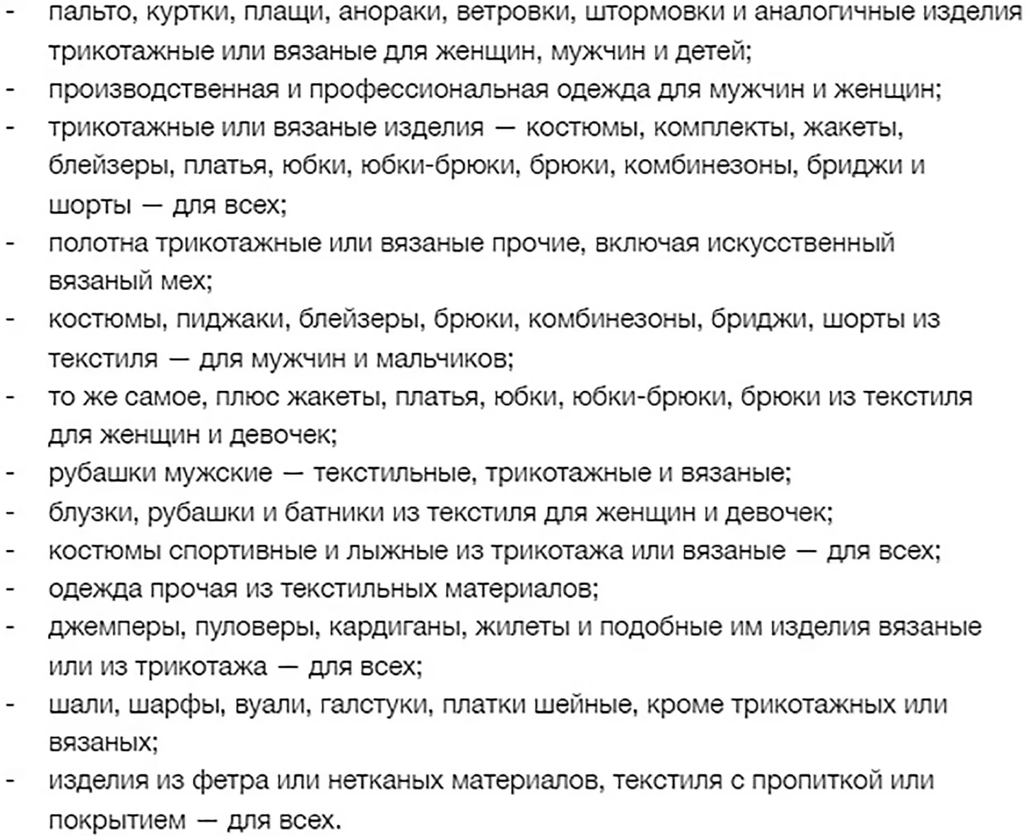 Перечень кодов ТН ВЭД изделий, которые включены в новый список:
