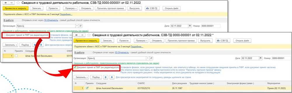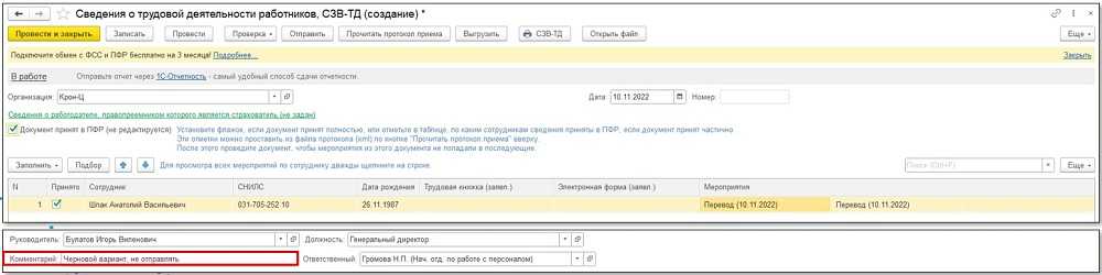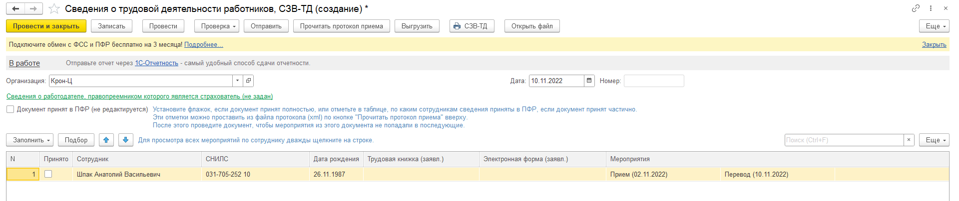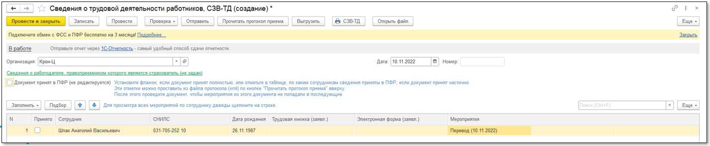 1. Сформировать «неправильный» СЗВ-ТД с задублированными мероприятиями — это «черновой» вариант, который отправлять в Фонд не нужно.
