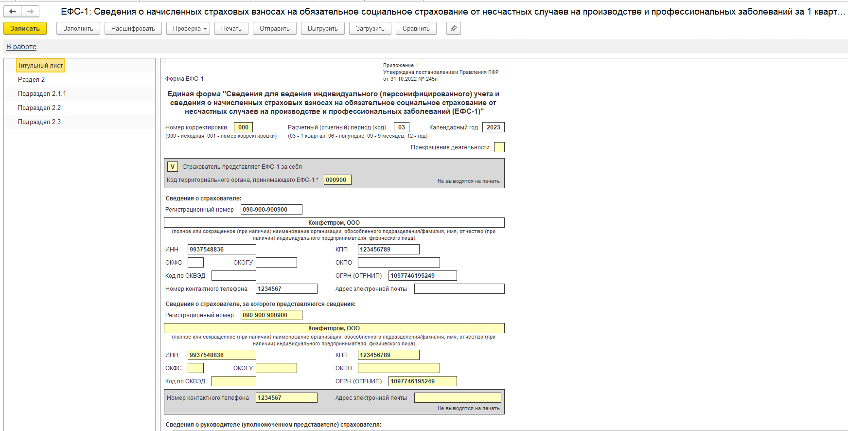 Мы рассказали, как заполнить новую форму ЕФС-1 в 2024 году. Когда в отчете будут сформированы все нужные модули, на титульном листе ставится дата его создания, должность, фамилия и инициалы директора, а также его подпись.