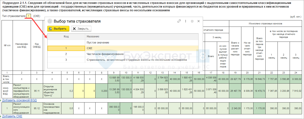 Подраздел 2.1.1 — облагаемая база и взносы от НС и ПЗ для организаций с СКЕ