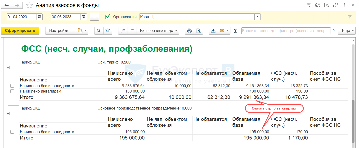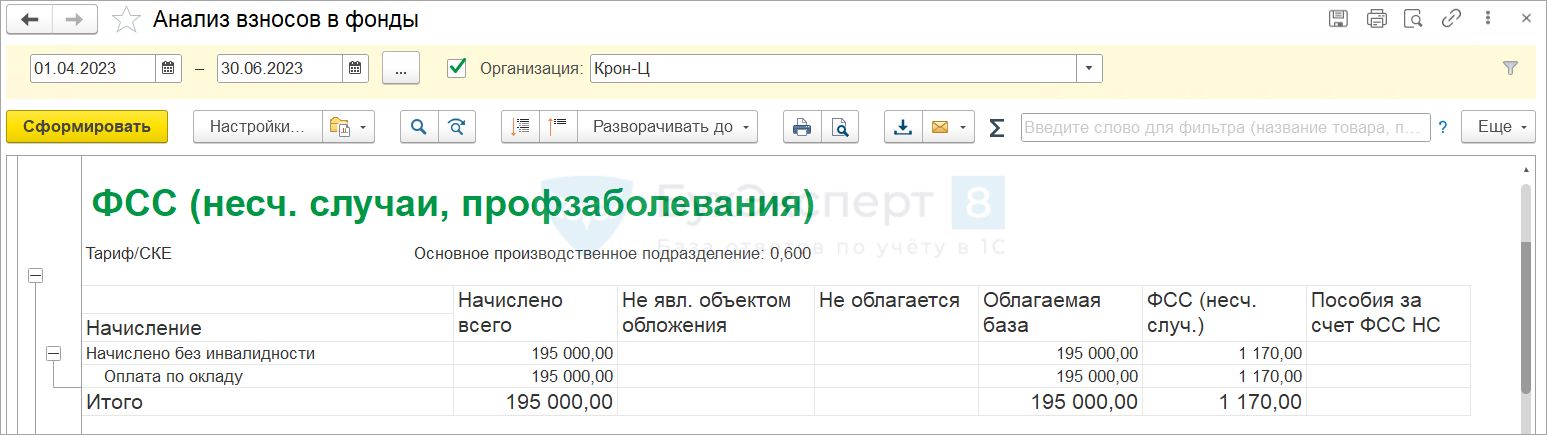 Заполненные данные можно проверить типовым отчетом Анализ взносов в фонды.