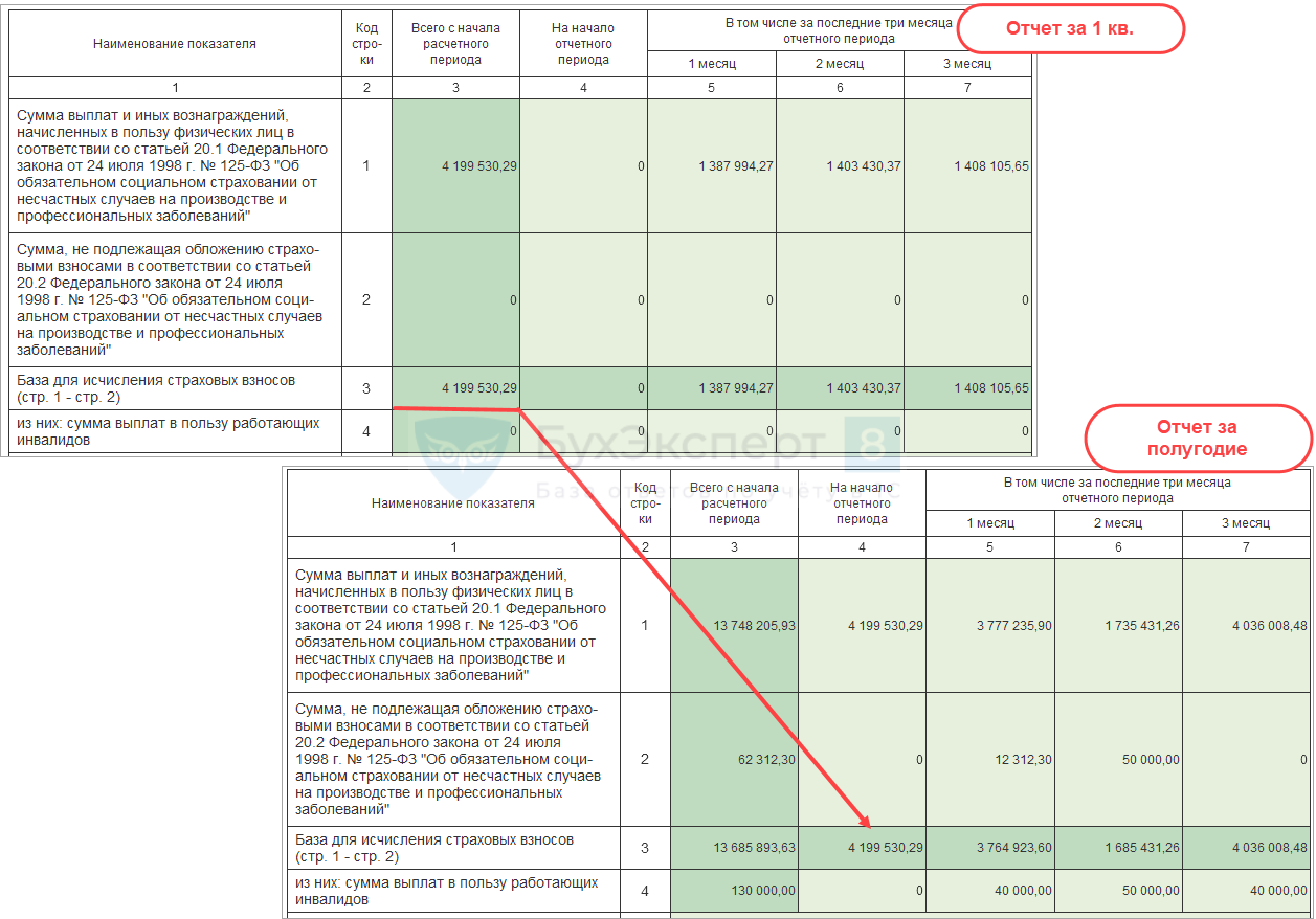 В отчете представлены данные и за текущий квартал и нарастающим итогом с начала года. При этом СФР сверяет отчеты Раздел 2 ЕФС-1 с отчетами за предыдущий отчетный период. Исключение – Раздел 2 ЕФС-1 за 1 квартал, он не подлежит такой проверке. Для отчетов за остальные периоды Фонд проверяет логику . Сверяются показатели:
