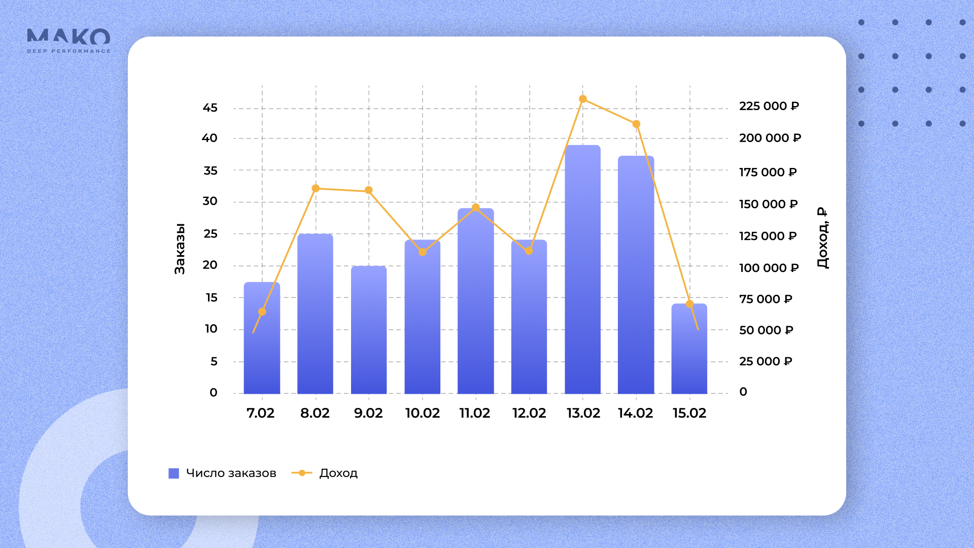 Во время затишья наши рекламные кампании работают с ограничением бюджета — 50 000 р в неделю. Но в период повышения спроса мы понимаем, что этих денег не хватит, алгоритмы могут проглотить сумму всего за 3 дня. Произойдет следующее: ограничения по бюджету сработают и рекламные кампании остановятся в самый разгар заказов. Чтобы этого не произошло мы снимаем ограничения бюджета на этот период.