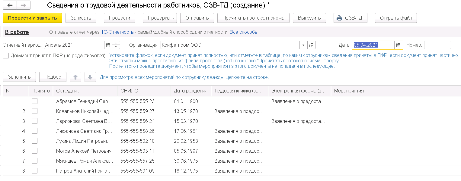 Порядок работы с СЗВ-ТД