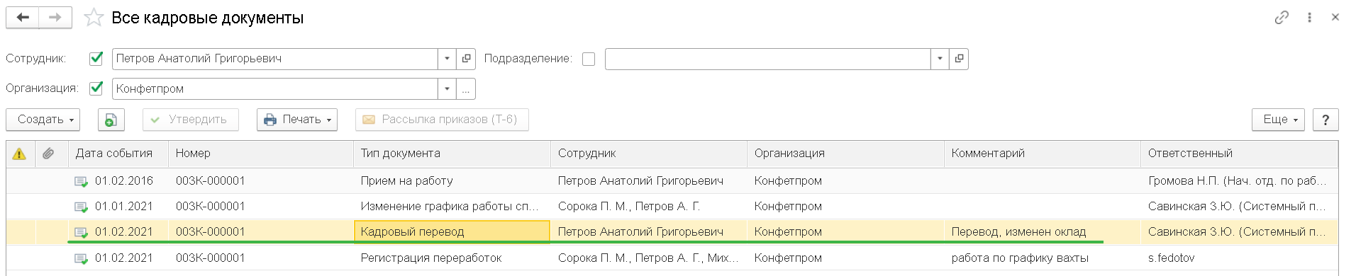 Как видим, в расшифровке мероприятий по Петрову наш кадровый перевод выделен серым – это признак отмены мероприятия.