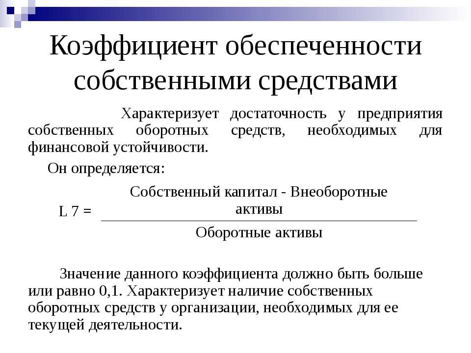 Понятие коэффициента обеспеченности собственными оборотными средствами