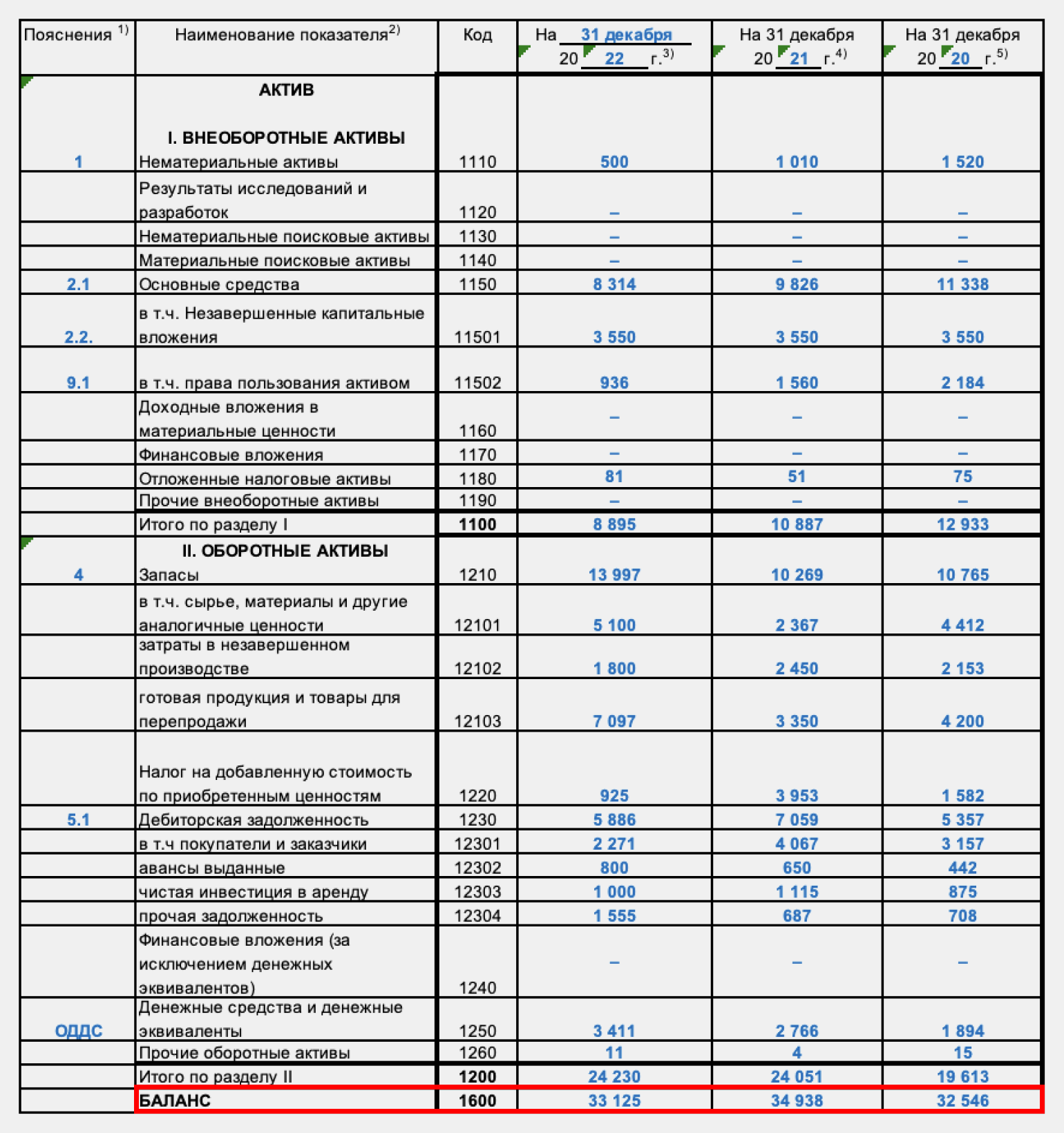 - Строка 1600 НП формы 1 — стоимость активов на начало периода, отражённая в бухгалтерском балансе.