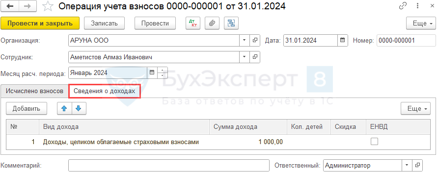- Сумма дохода — сумма компенсации (в нашем примере — 1 000 руб.)