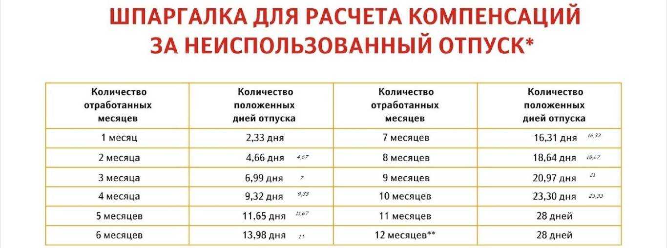 Расчет компенсации за не отгуленный отпуск. Фото businessizakon.ru