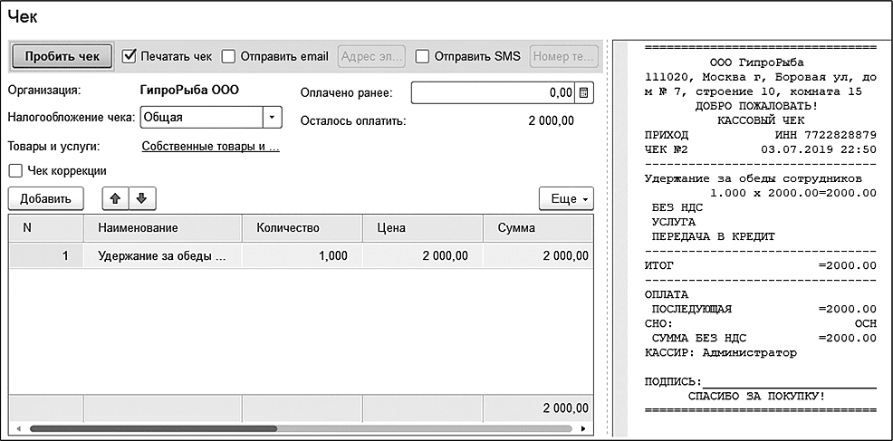 Кассовый чек при удержании из зарплаты в «1С:ЗУП 8» (ред. 3)