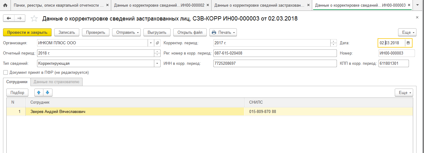 СЗВ-КОРР в «1С:Предприятие 8»
