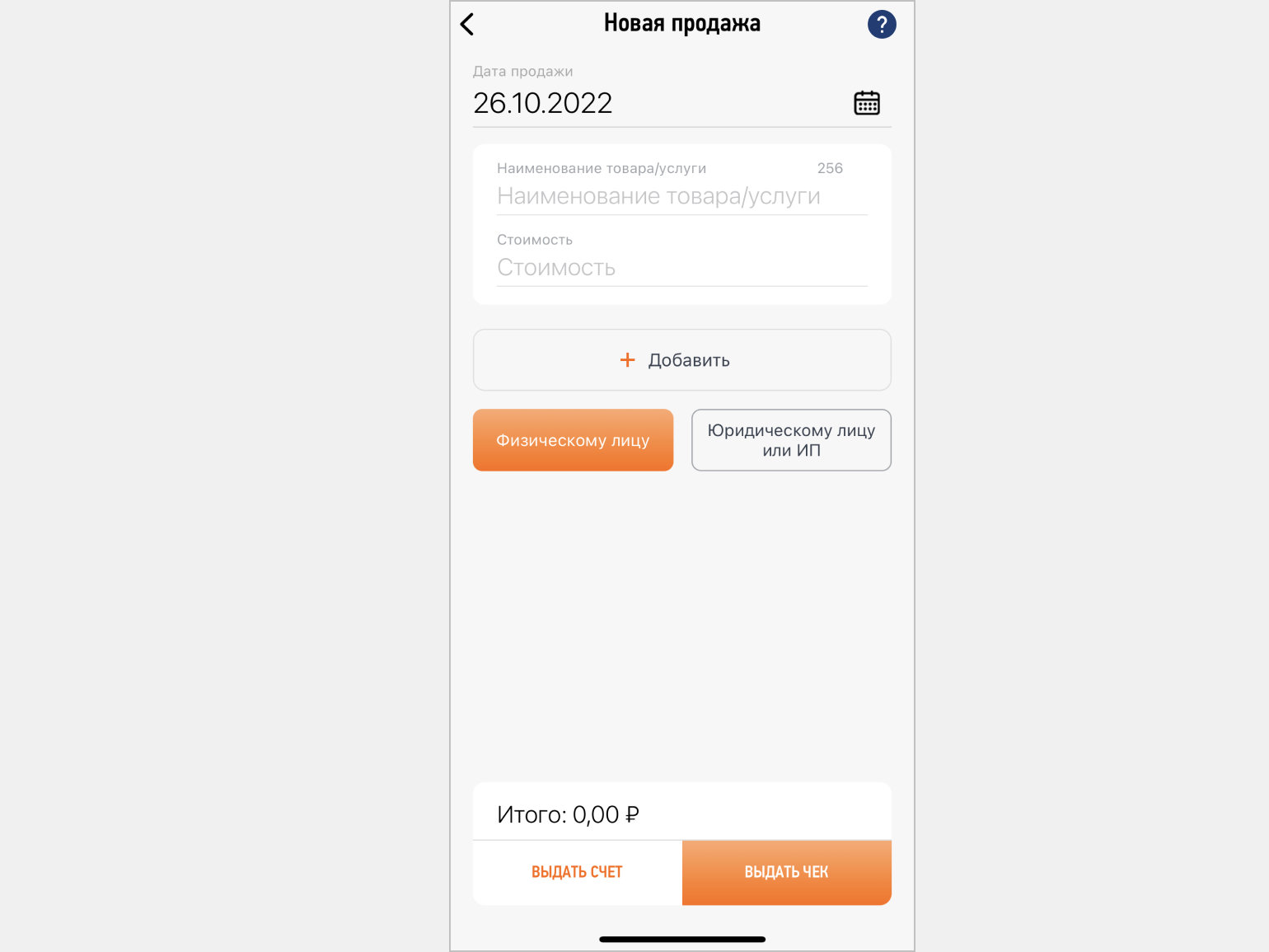 Так выглядит раздел формирования новой продажи в приложении «Мой налог»Скриншот: «Мой налог» / Skillbox Media