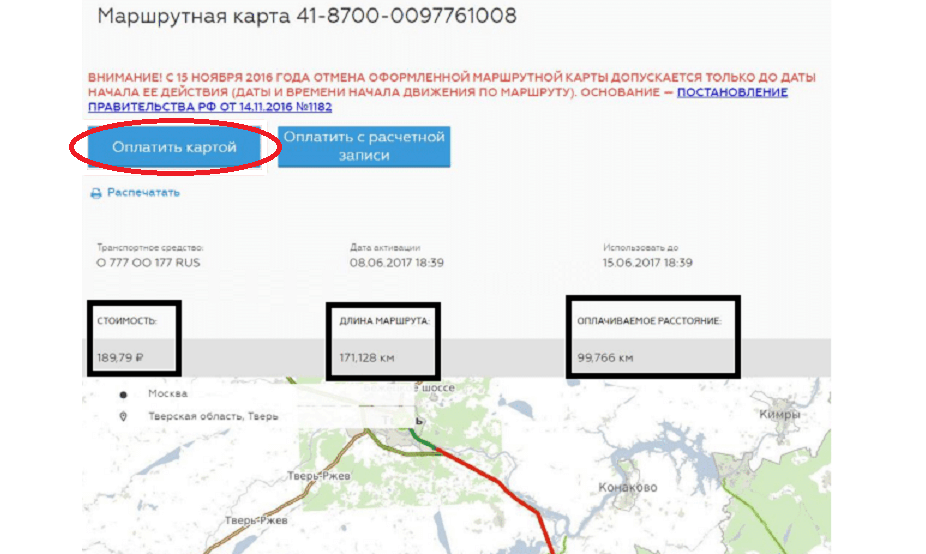 Маршрутная карта содержит маршрут планируемой поездки, в ней указываются начальные и конечные пункты, а также дата отправления транспортного средства. Имеется возможность дополнительно указать от 1 до 10 промежуточных точек. Оформление маршрутной карты самостоятельно можно произвести через личный кабинет на сайте системы «Платон» или через мобильное приложение. Если же возникли какие-то трудности с оформлением, то можно обратиться в Центр информационной поддержки пользователей. Оплату поездки необходимо произвести в течении 24 часов с момента оформления карты. Осуществить её можно следующими способами: