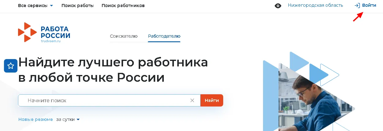 - Нажмите на иконку “Найти работу” в главном меню сайта.