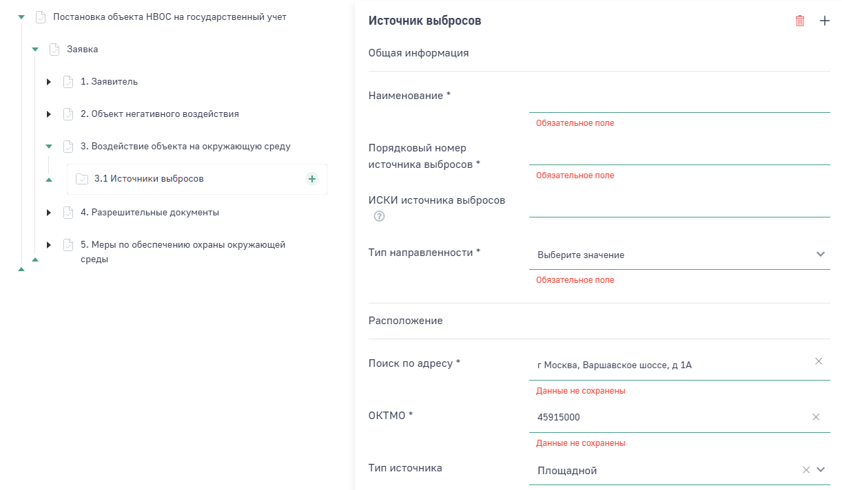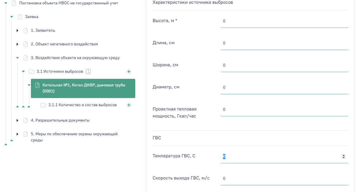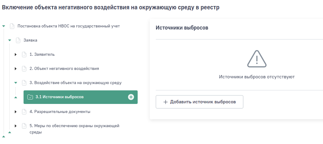 Заполнение раздела «Воздействие объекта на окружающую среду» заявки на постановку объекта НВОС на учет.