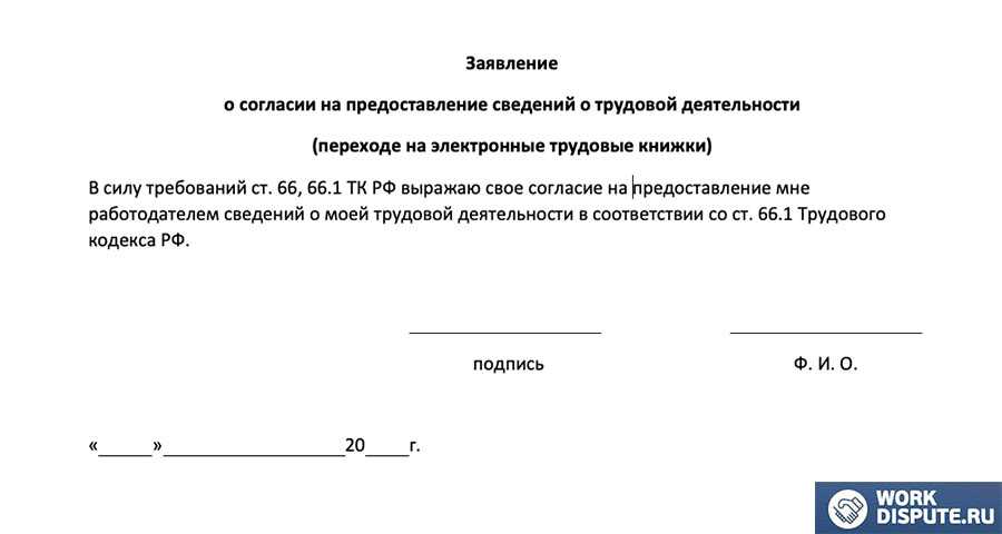 Какого-либо унифицированного образца заявления на оформление трудовой книжки в электронном виде на сегодняшний деньнет, оно составляется в произвольной форме. Кадровая служба любой организации может самостоятельно составить бланк заявления на электронную трудовую книжку. Практика показывает, что такое заявление весьма компактно, в нём: