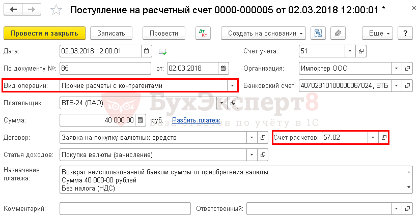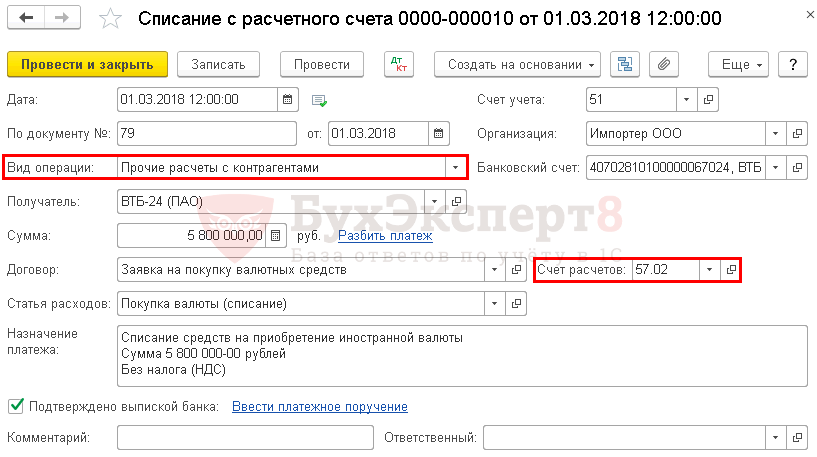 Покупка валюты в 1С 8.3 Бухгалтерия — пример.