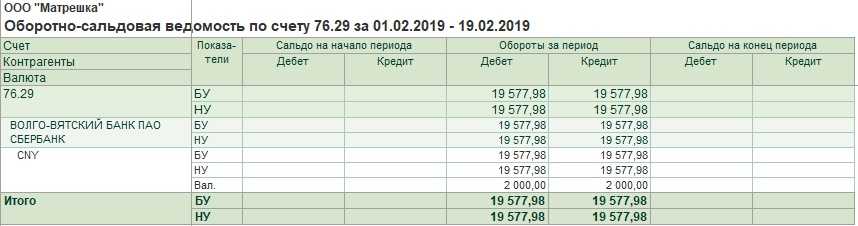 Обращаемся к 76.29 счету и смотрим на оборотно-сальдовую ведомость (по окончанию отчетного периода сальдо равно «0»).