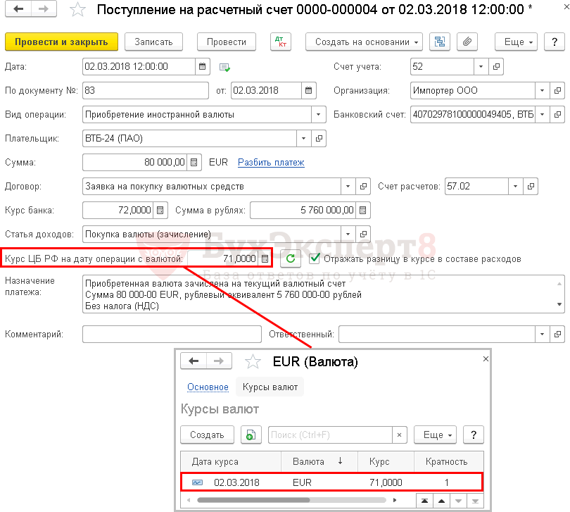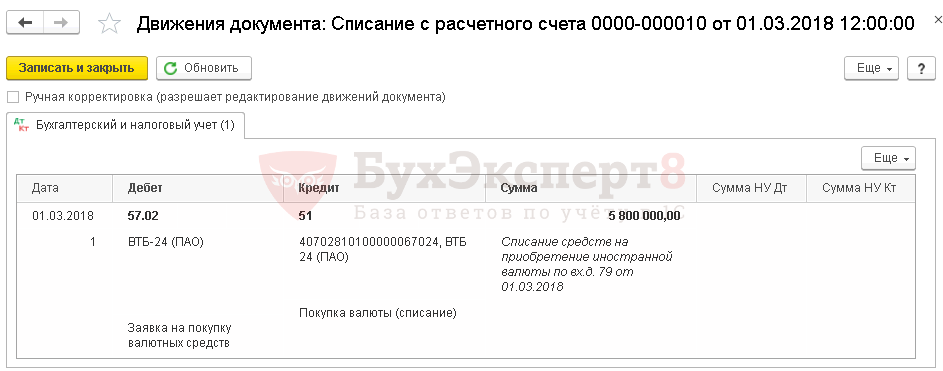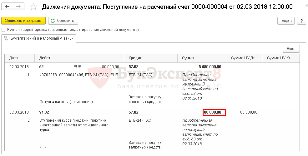 Покупка валюты — проводки в 1С 8.3 Бухгалтерия