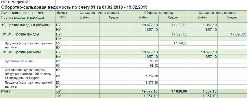 | 91/1 | Отражение положительной курсовой разницы от переоценки валюты (57 000 долл. США * (66,12 — 65,10)) | 58 140 руб. | Бухгалтерская справка-расчет | |