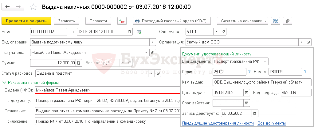 В последнем случае оформите расходный кассовый ордер по форме № КО-2.
