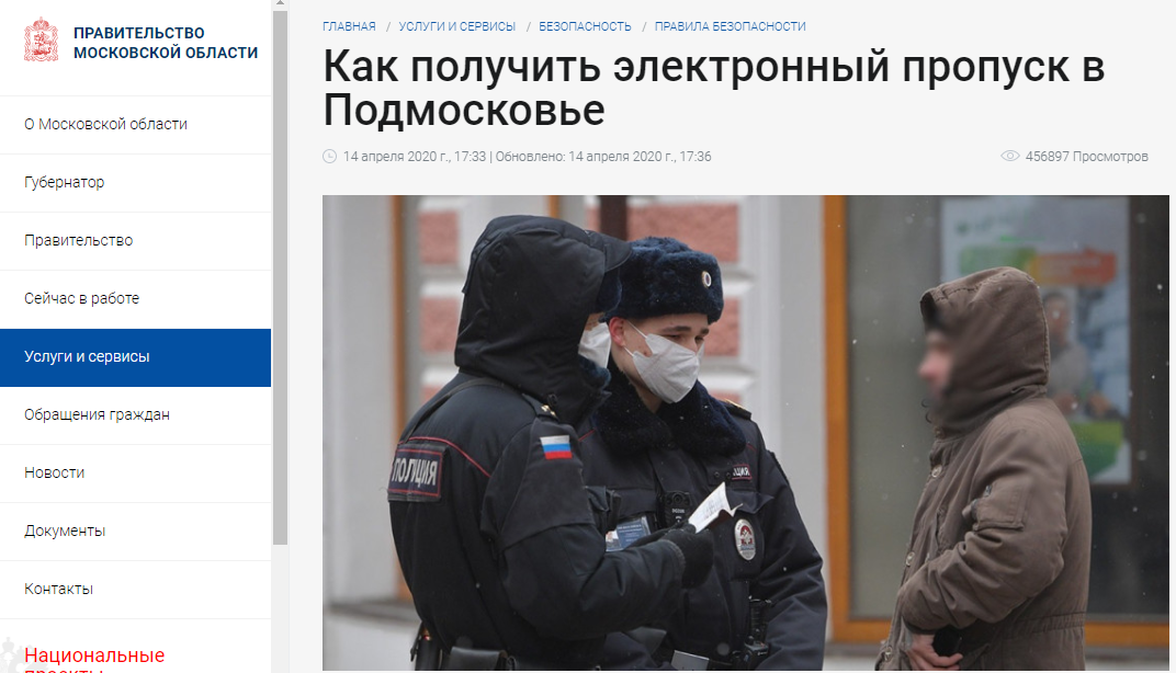 Жители Подмосковья получить пропуск могут на сайте uslugi.mosreg.ru или через Госуслуги.