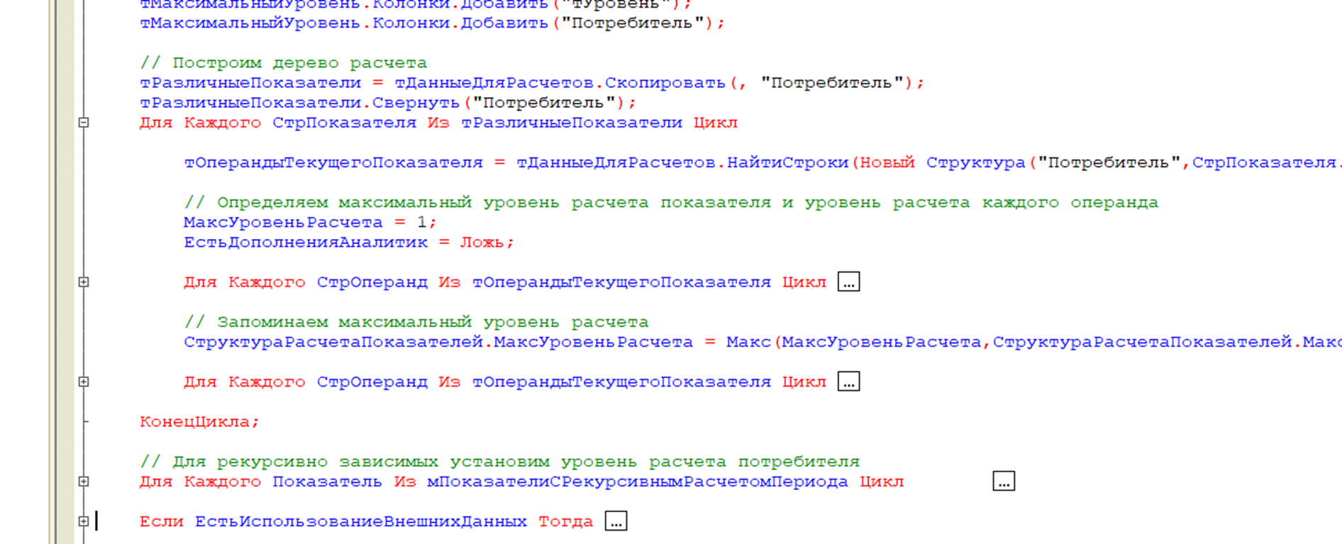Ну и здесь я ставлю автоматическое сворачивание групп для областей. Если у вас большие модули, и вы, как и рекомендует фирма 1С, весь код размещаете внутри определенных областей, то открывая общий модуль вы сразу видите его структуру без лишних листаний.