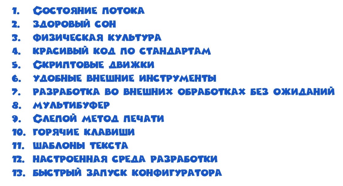 Это все позволяет оставаться мне, как мне кажется, продуктивный разработчиком 1С. Чего я и вам, искренне, от всей души, желаю.