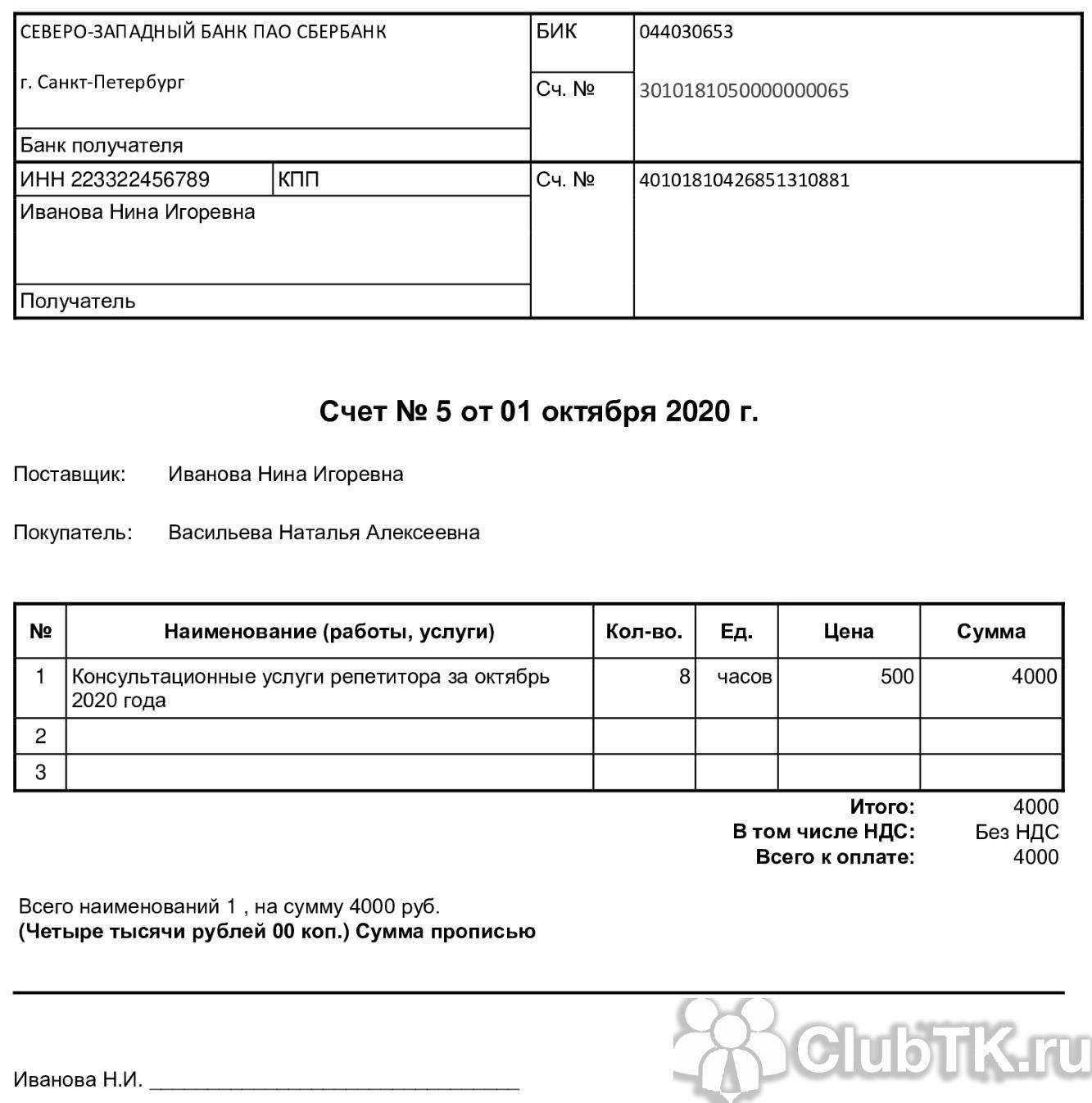 Счет на оплату от ИП в 2019 году: образец и порядок выставления