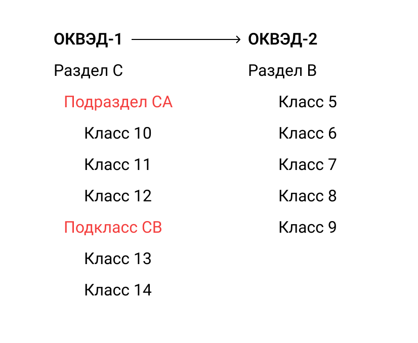 Чтобы видеть всю пользу обновленного классификатора, давайте еще раз сравним соответствие ОКВЭД и ОКВЭД2 и поймем ключевые различия между ОКВЭД и ОКВЭД2:
