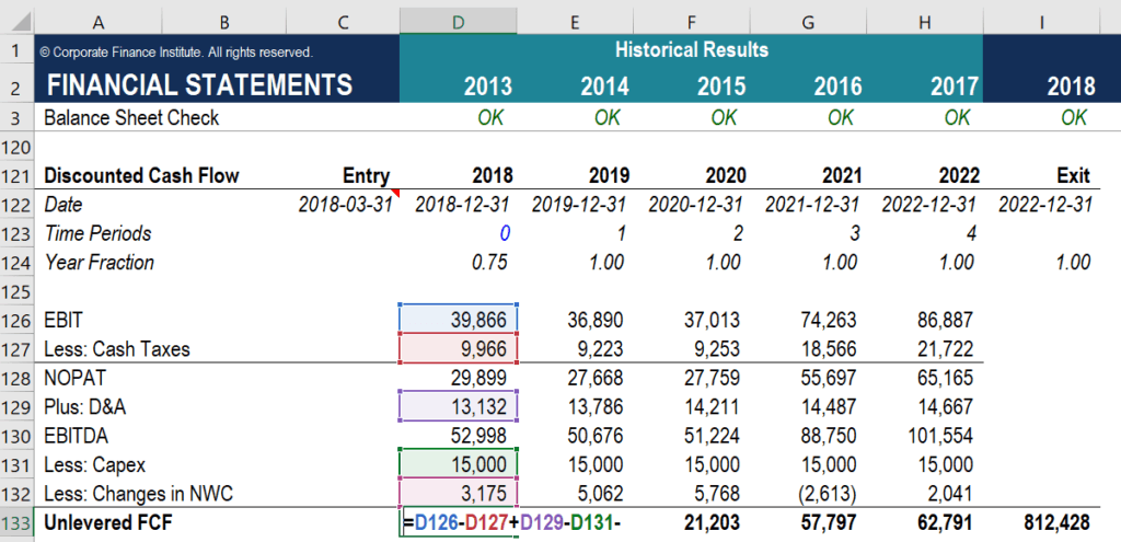 К свободному денежному потоку(OCF) прибавляют проценты(Interest expenses), подлежащие выплате по любым займам — облигациям, конвертируемому долгу или кредитным линиям и вычитают капитальные затраты(CAPEX -) и налоги(Tax).