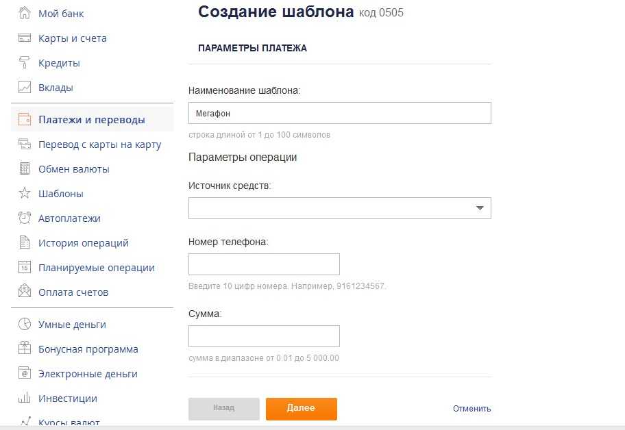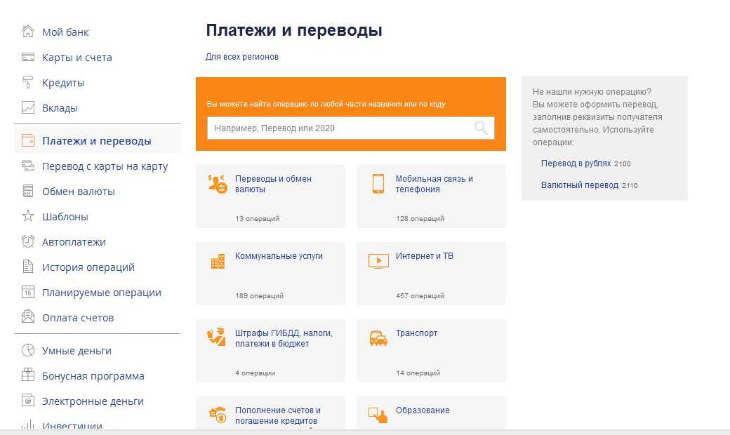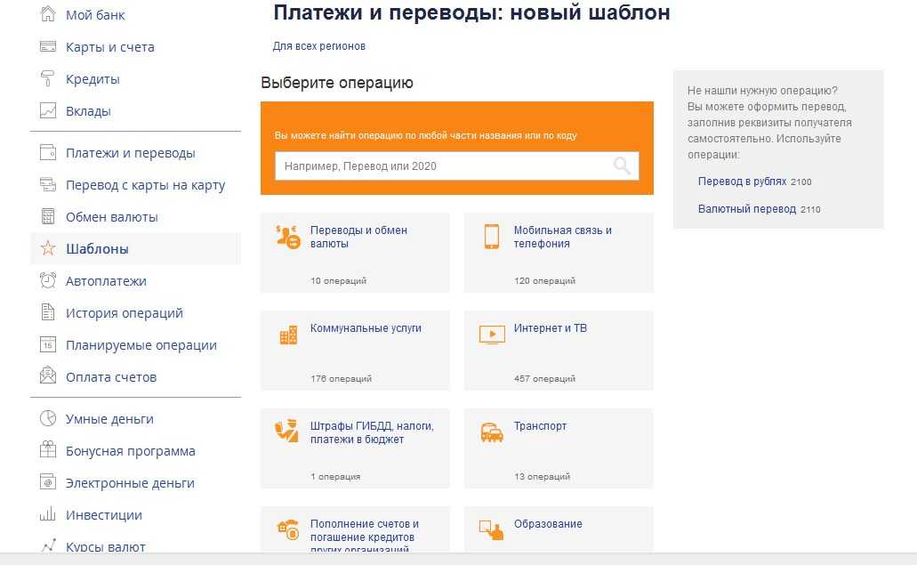 В личном кабинете доступна оплата связи, коммунальных услуг, Интернета, погашение задолженности по кредитам в любых банках и совершение практически любых других платежей. Для удобства пользователей в разделе «Платежи» представлен каталог готовых шаблонов на оплату самых популярных услуг.