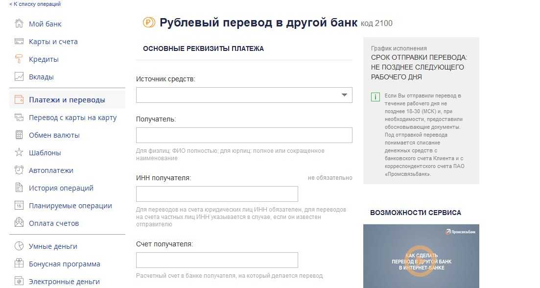 Преимущества работы с Промсвязьбанк