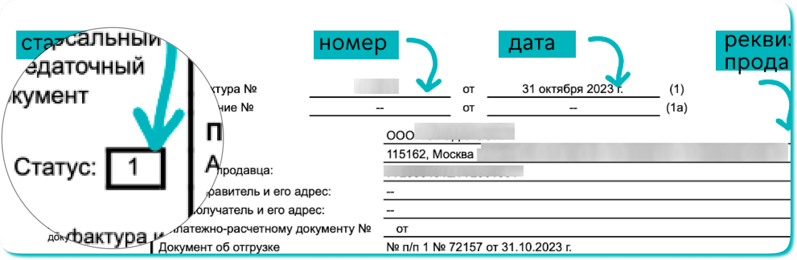 В левом верхнем углу УПД можно увидеть необычную строчку — «Статус». Вот она на картинке: